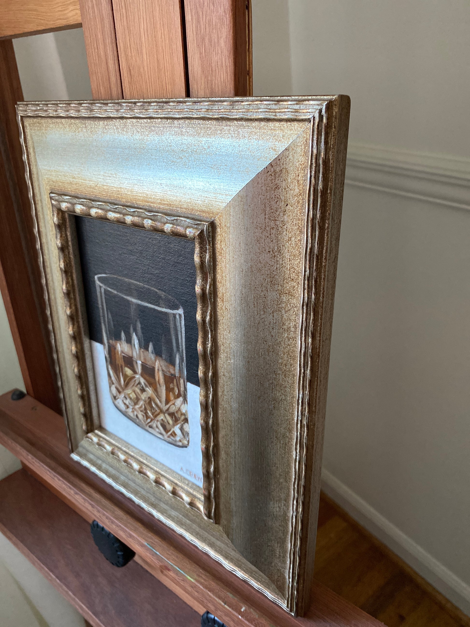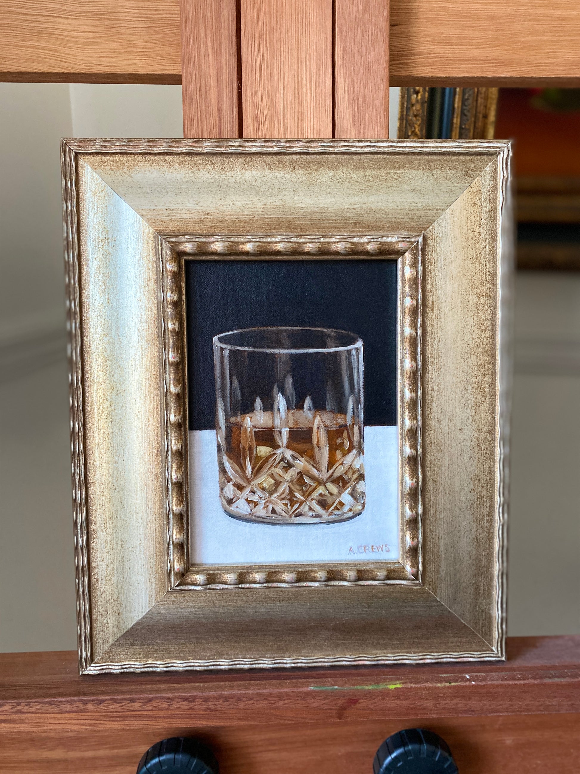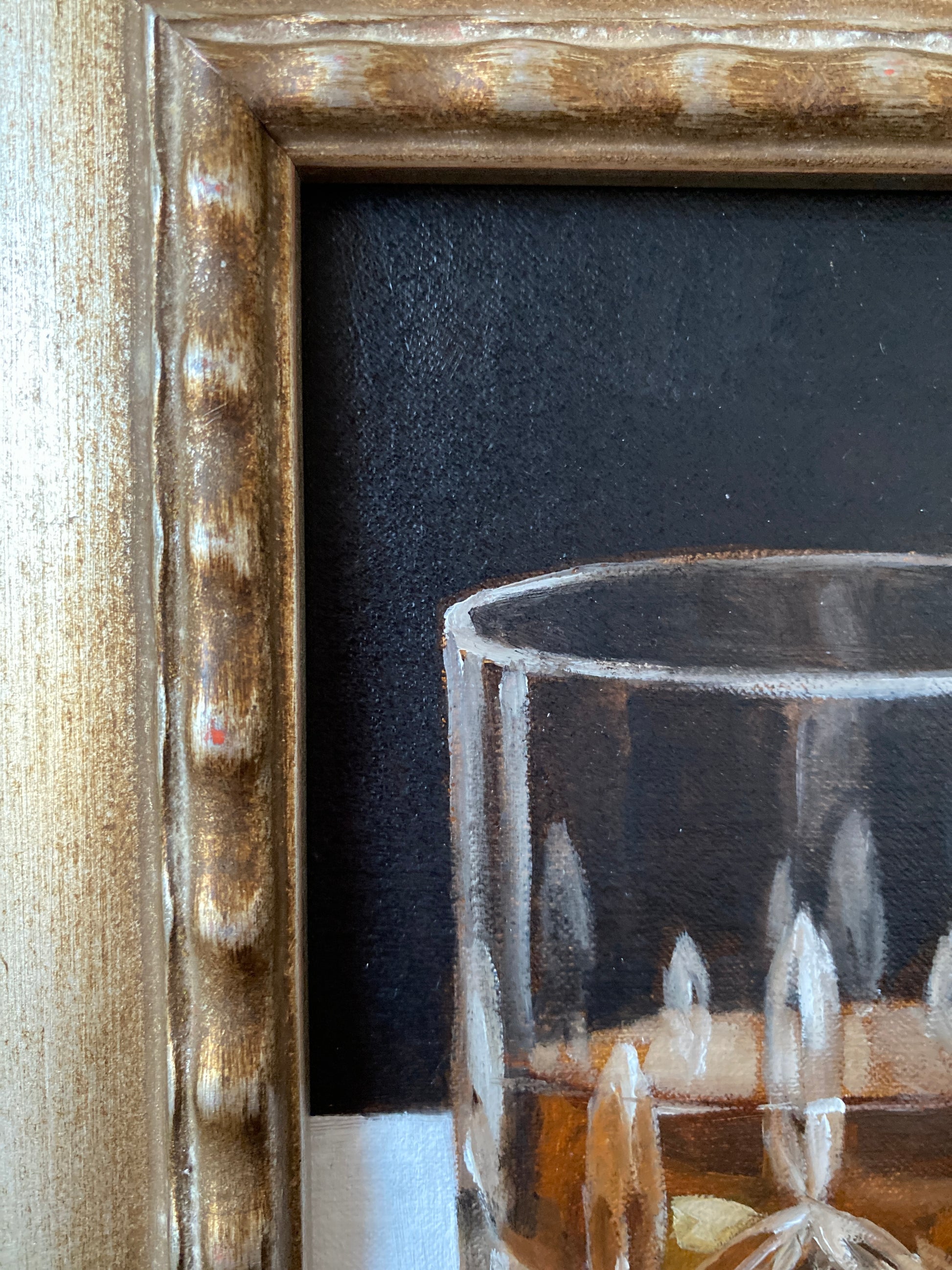 Perfect for the bourbon enthusiast. Oil painting measures 5" x 7" on linen panel. Framed. Shipping and insurance is included in the price. Please allow 1-2 weeks for delivery.