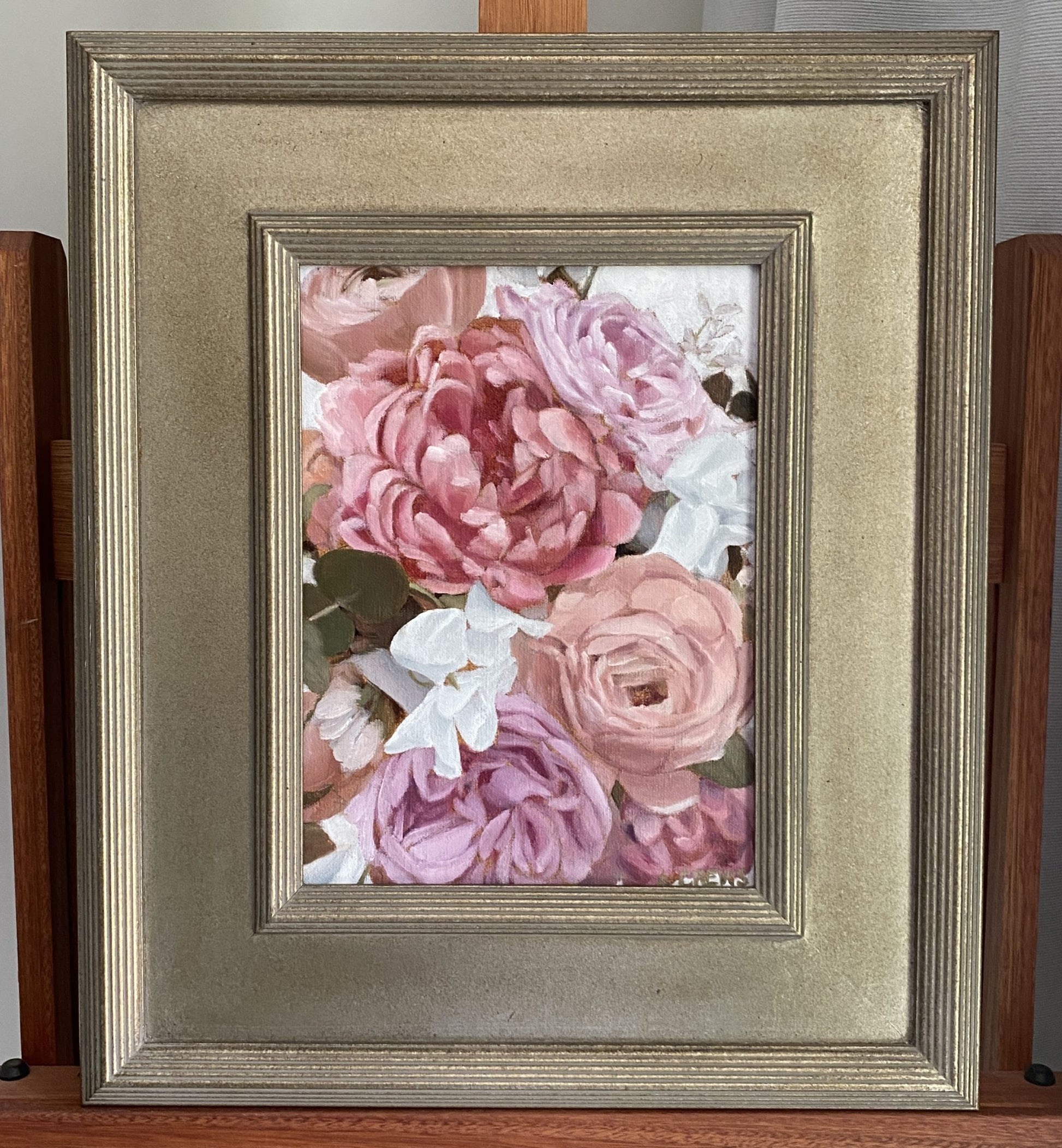 This painting measures 9"x 12" (dimensions do not include the frame, but frame is included). Oil on linen panel. Shipping and insurance is included in the price. Please allow 1-2 weeks for delivery.